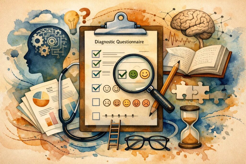 In Nederland en België helpt het om te beseffen dat de route naar diagnostiek vaak draait om een totaalplaatje. Je komt meestal via huisarts (of in België soms direct via psycholoog/psychiater) bij gespecialiseerde diagnostiek terecht, en daar tellen levensloop, voorbeelden, belasting, coping en comorbiditeit zwaar mee. Een vragenlijst kan dan ondersteunend zijn, maar nooit het hele verhaal.